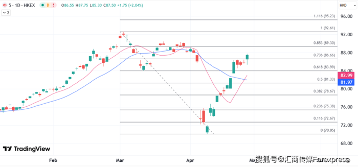 营收与利润双双超出预期,加上回购计划,汇丰在午后的港股中撑起,尽管本月部分回吐,但汇丰今年的股价累计上涨近15%,仍远超过同行的平均表现,当前可以继续关注3月初高位在92港元上方为目标,但目前突破90港元对于技术上的反弹跟进为关键。在亮眼的业绩过后,市场也进一步关注宏观经济环境不确定性对于汇丰信贷损失的影响。数据显示,如果关税上调导致全球经济增长放缓,该行可能再计提5亿美元损失。